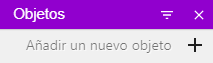 A la derecha, puedes ver un panel llamado "Objetos". Haga clic en el botón + para agregar un objeto.