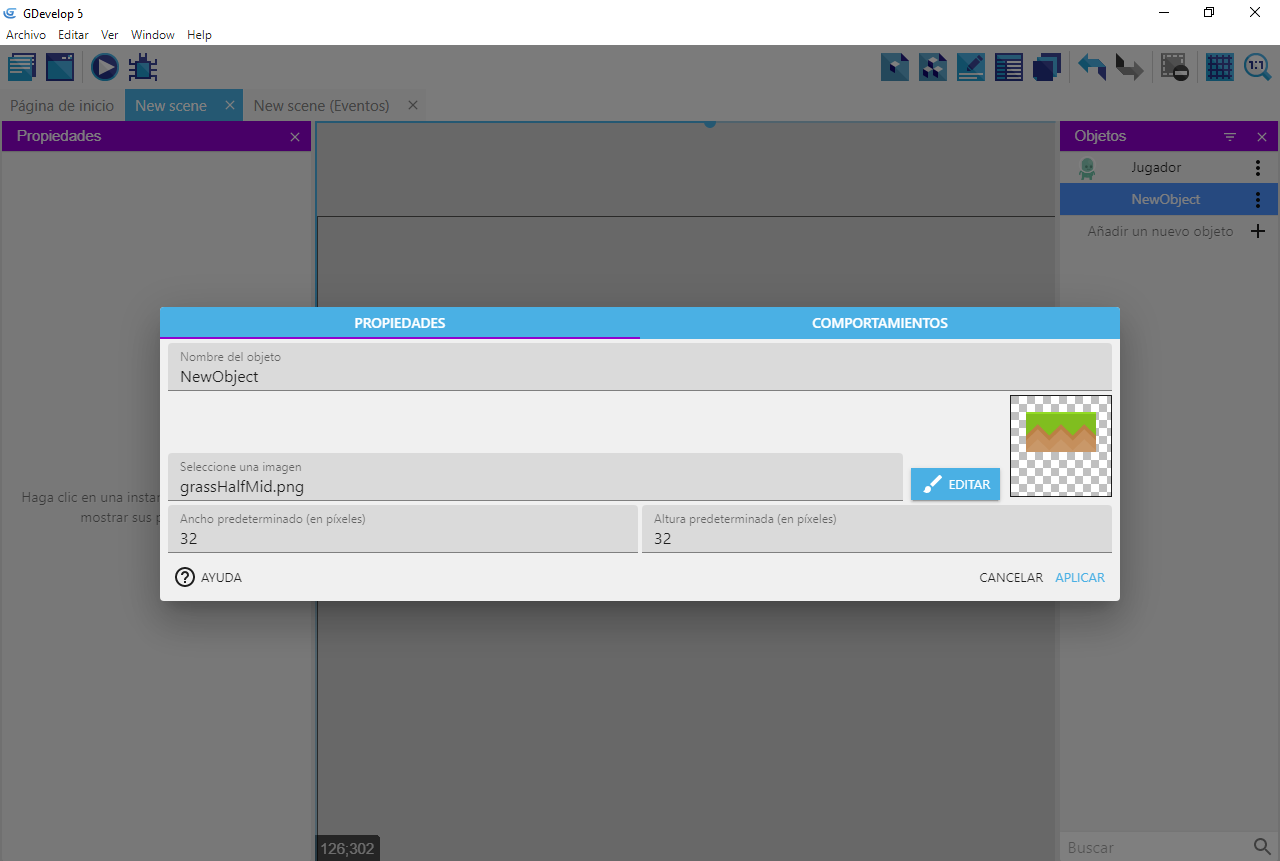 El jugador controlará un personaje que puede saltar y moverse en plataformas. Vamos a crear este objeto.