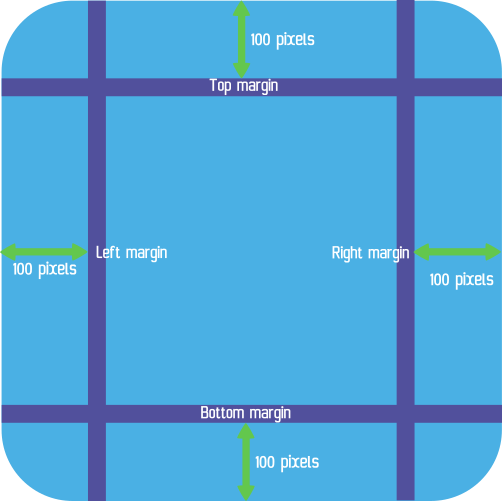 If the top margin is set to 100, the margin would be 100 pixels from the top and if the bottom margin is set to 100, the margin would be 100 pixels from the bottom.