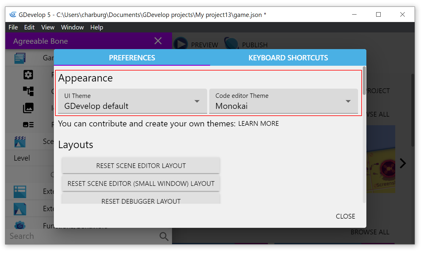 Code editor theme changes the look of the code editor in the JavaScript code block