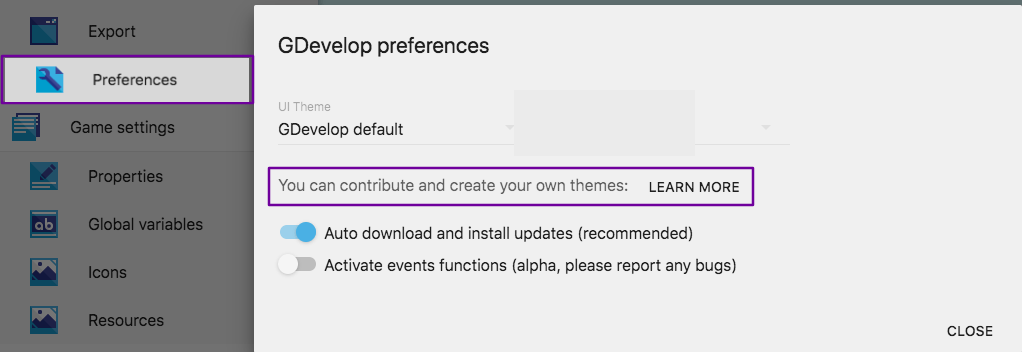 Creating Themes in GDevelop
