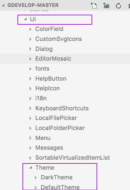 export const getTheme = themeName => themes[themeName] || themes['GDevelop default']; ` Now, when you run GDevelop, you will see your new theme referenced in "Preferences": For additional information check out the link that is included in GDevelop: