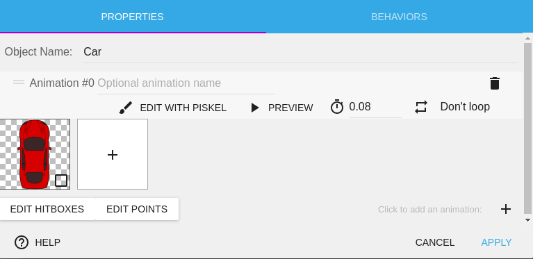 「car.png」という名前の画像をアニメーションとして追加し、「適用」オプションをクリックします。.