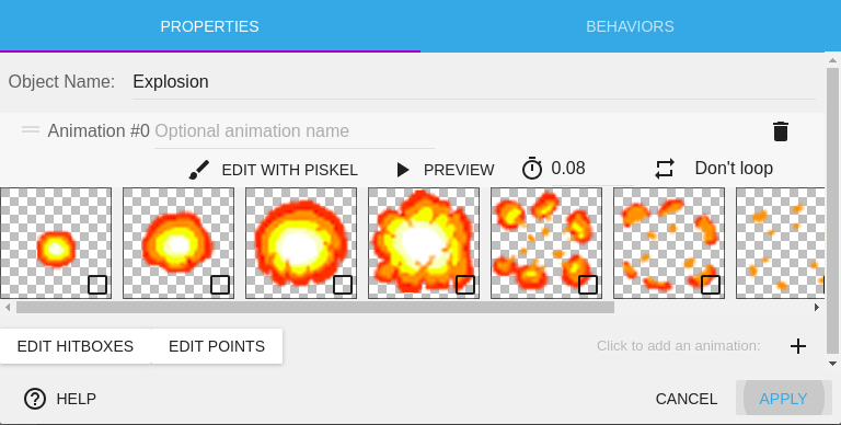 オブジェクトにアニメーションを追加しましょう。アニメーションには、スプライトオブジェクトの画面に表示される画像が含まれています。