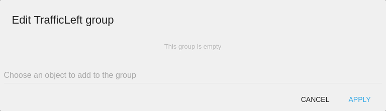 To add objects to TrafficLeft, click on the group name. A new dialog will appear.